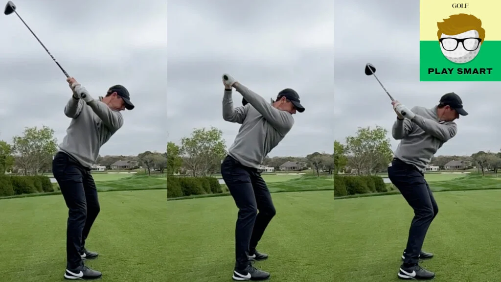 NOTE: Golf Magazine said that Rory focuses on a wider takeaway so that he can shallow at the top and swing up the slot with rotated (open) hips.