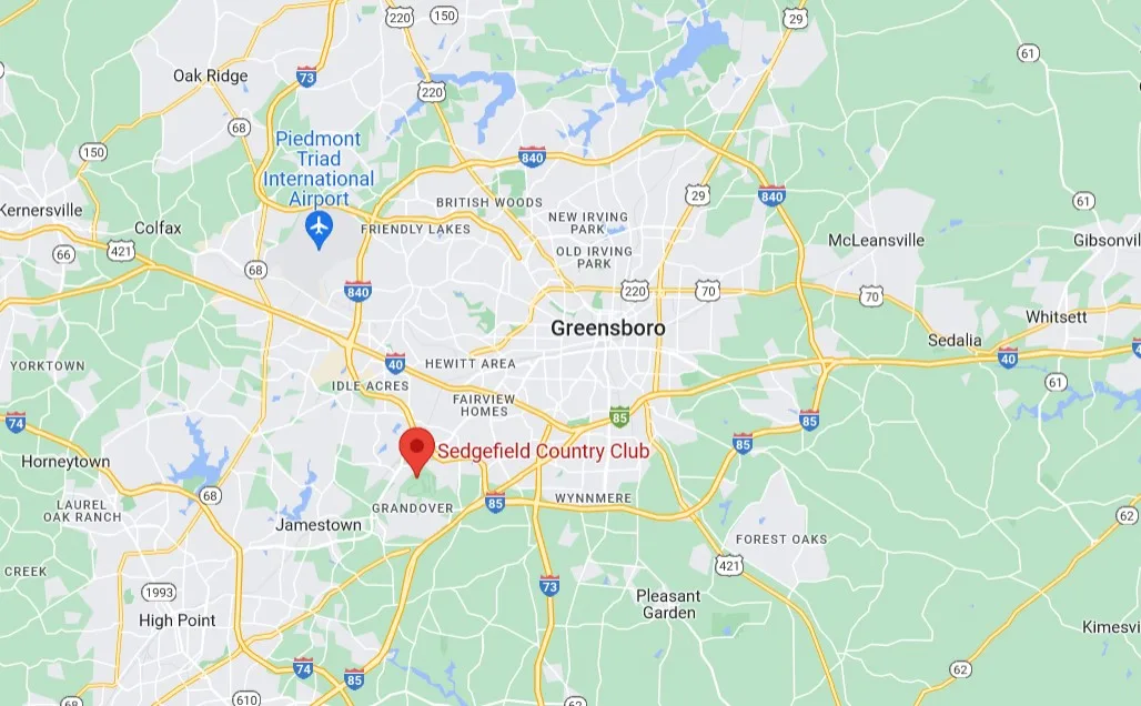 Sedgefield Country Club sits on the southwest portion of the city, which has also long been home to the ACC men’s basketball tournament. In the grand scheme of North Carolina, Greensboro is located directly west of Raleigh and Durham in the middle of the state.