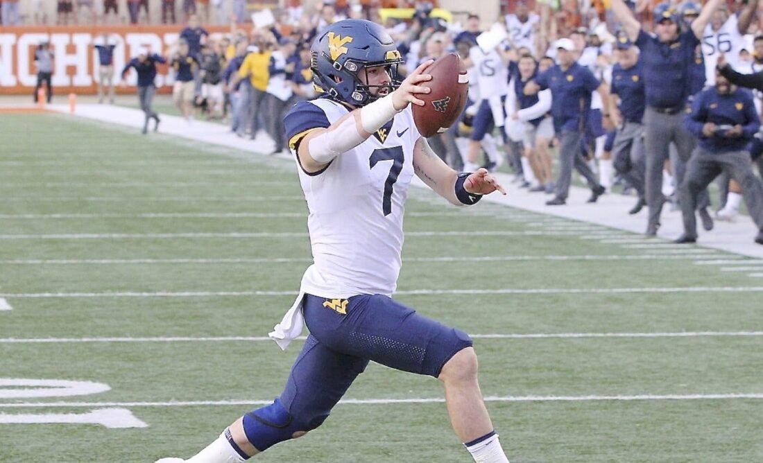 Quarterback Will Grier runs in a two-point conversion during West Virginia’s win at Texas during the 2018 season.