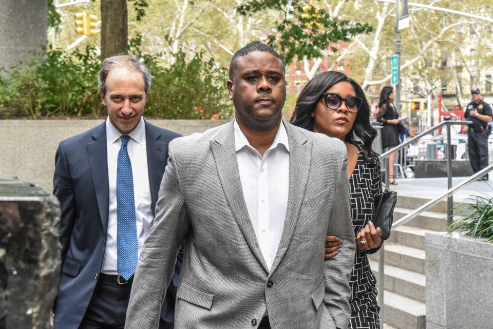Former Adidas consultant Merl Code (center) is suing the shoe company after he served prison time for actions he claims he did on the company's request. (Photo by Stephanie Keith/Getty Images)