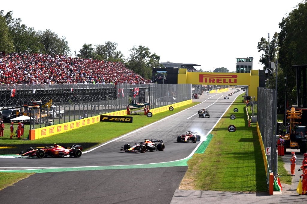 Verstappen got the better line through the chicane to get a great exit and take Sainz side by side through Curva Grande. Sainz was later on the brakes into the Roggia chicane, but he’d been forced onto the outside line.