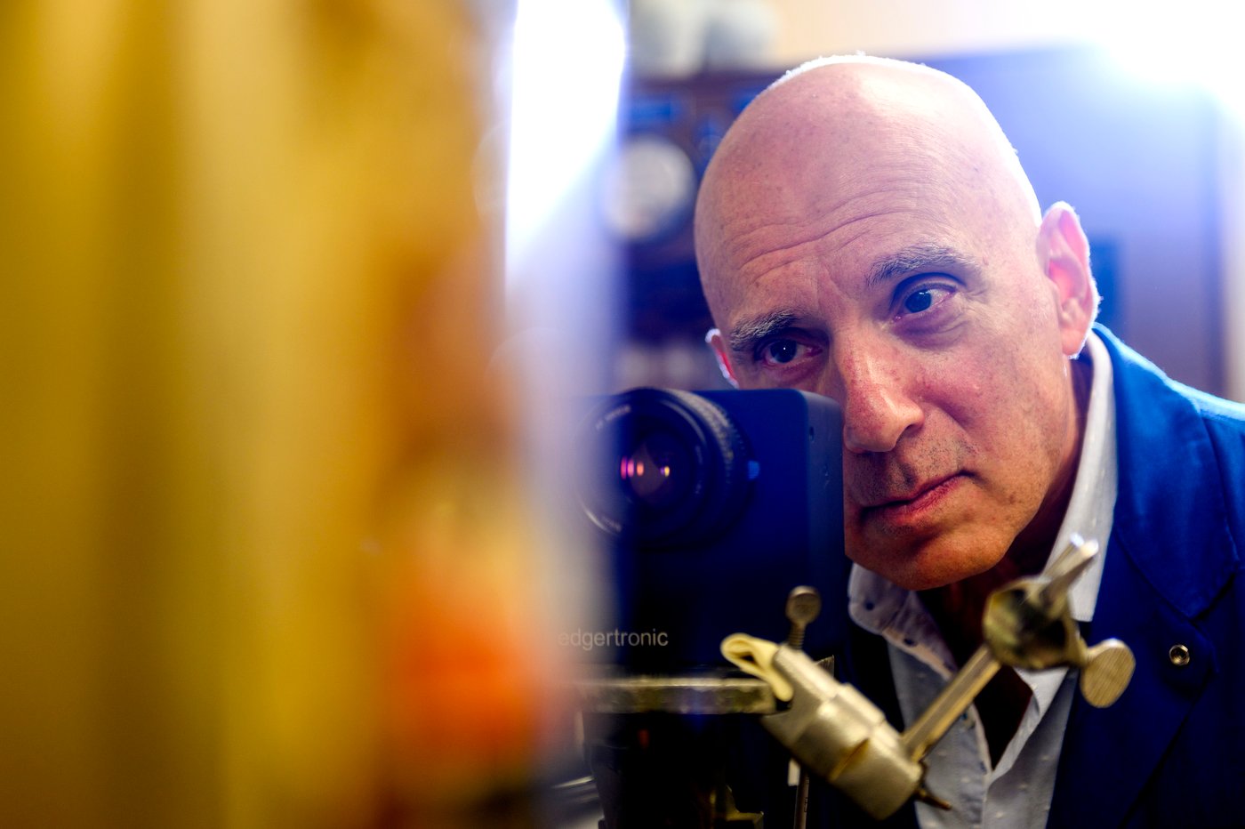 09/25/23 – Boston, MA – Whip expert Jack Lepiarz, known as Jack the Whipper, participates in a whip manipulation experiment with Northeastern doctoral candidates and Professor Dagmar Sternad in Richards Hall on Monday. Sept. 25, 2023. Photo by Alyssa Stone/Northeastern University