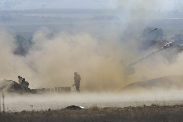 An Israeli mobile artillery unit fired a shell from southern Israel towards the Gaza Strip, in a position a near the Israel Gaza border, Israel, Wednesday, Oct. 11, 2023. (AP Photo/Erik Marmor)
