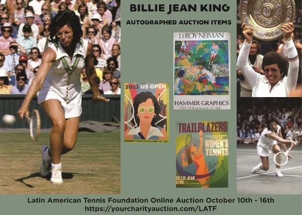 *Billie Jean King has donated her autographed autobiography, 2023 US Open program and artwork for the auction.