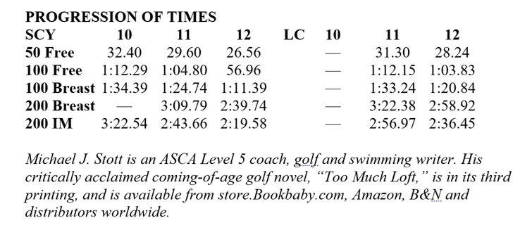As a 13-year-old, Mason will advance to a group where the emphasis will be to “Compete to Excel,” says Swander. “There he will continue his 400 IM and distance training and add an additional day of dryland.”
