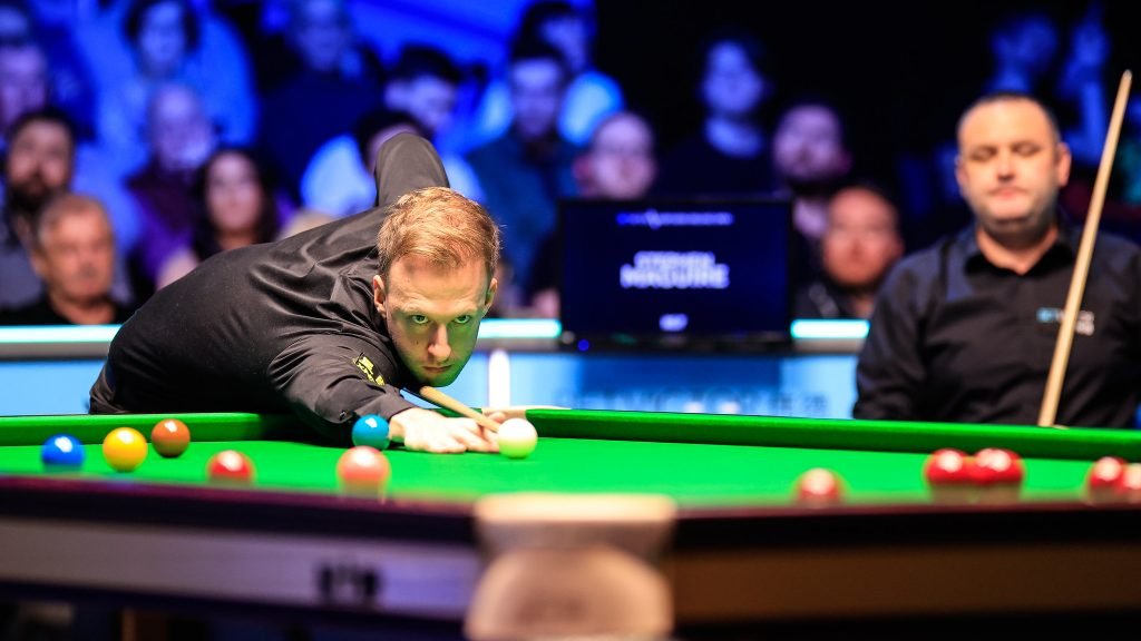 Scotland’s Maguire won a scrappy opening frame tonight before Trump levelled with a break of 78. Maguire, playing in his first ranking quarter-final since the 2022 World Championship, regained the lead with a 74, then got the better of a safety battle on the brown in frame four and took advantage for 3-1.