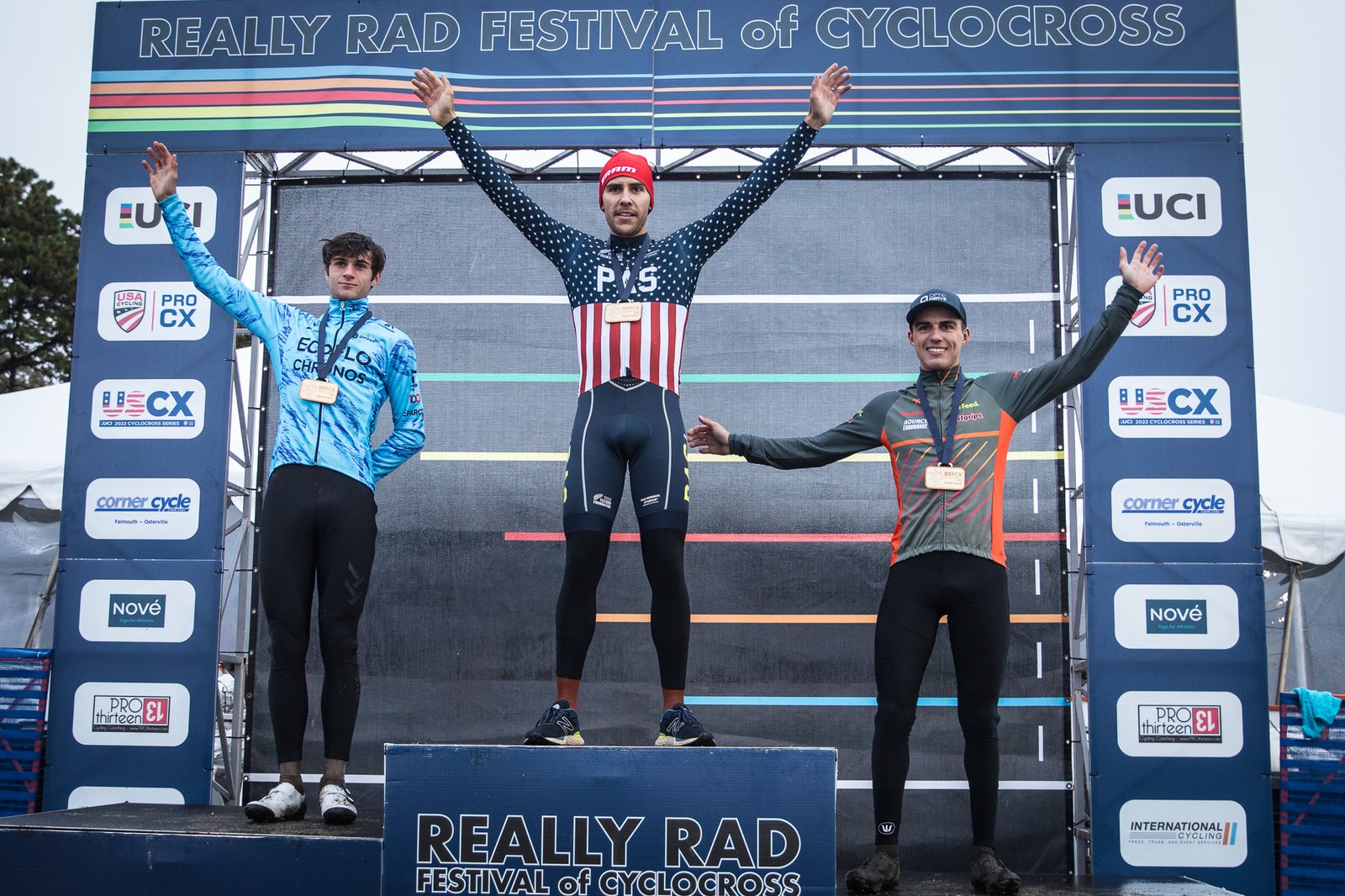 Even though the US champion claimed first spot in the elite men’s race again – and the USCX Cyclocross Series title as well – it was far from a carbon copy of Saturday’s C1 race. The lower spots of the podium switched, with Luke Valenti (Ecoflo Chronos) taking second after an impressive early challenge and Dylan Zakrajsek third, plus the conditions transformed the 3.3km course at the Cape Cod Fairgrounds with the dry terrain turning into slippery mud.