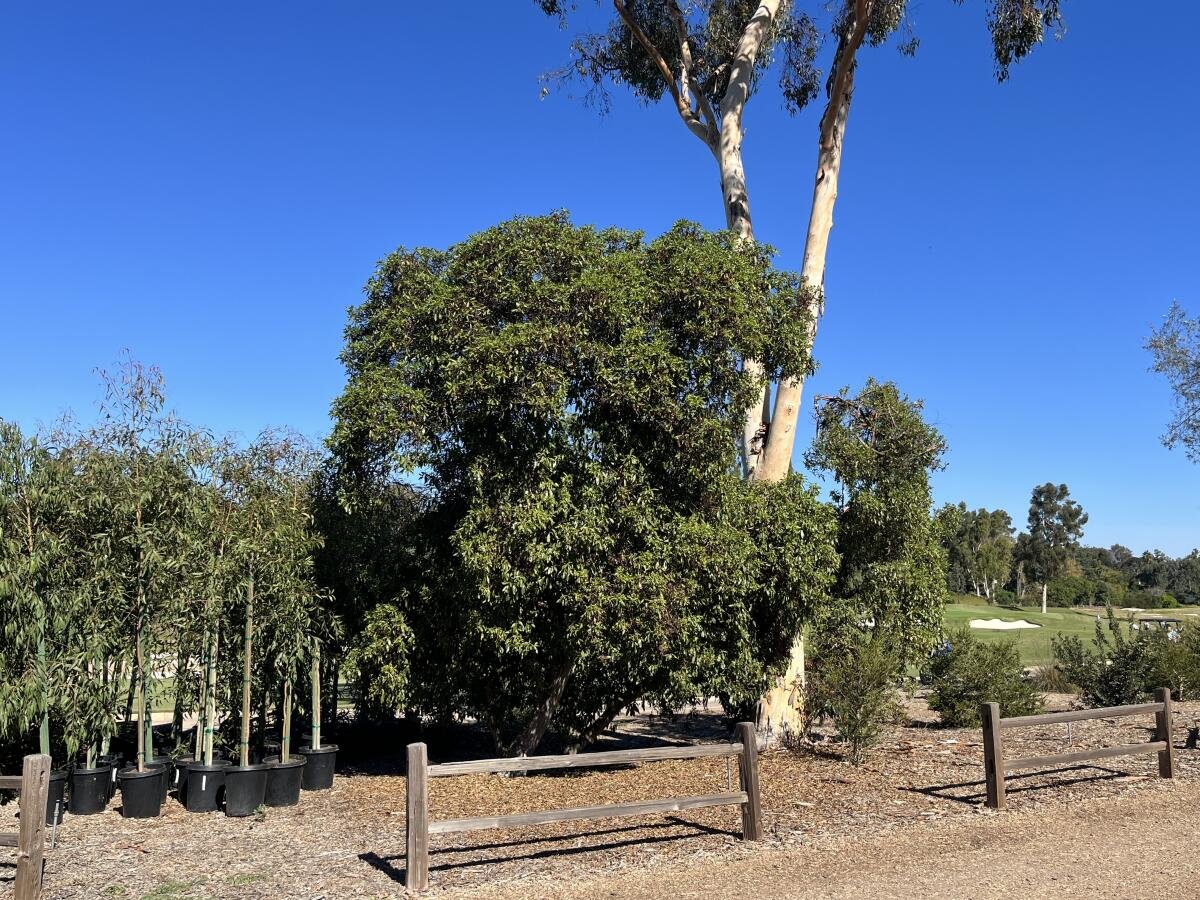 Near the seventh hole of the Rancho Santa Fe Golf Club, a grove of big boxed trees sits ready to be planted along the trail that rings the golf course. The Rancho Santa Fe Association will soon begin planting a total of 156 new trees along two miles of the golf course trail, as part of the trail beautification plan approved by the Art Jury over the summer.