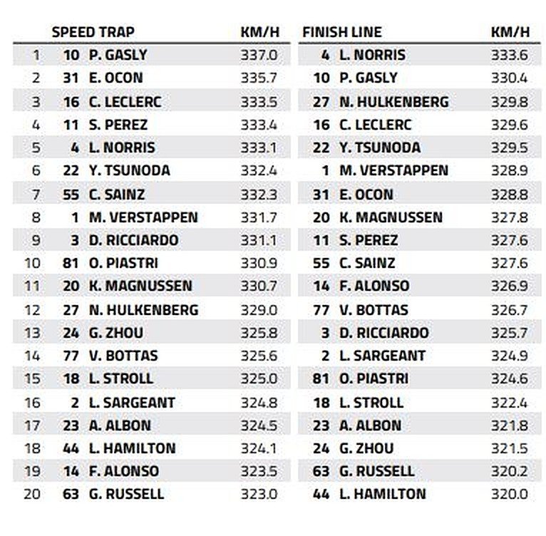 So we’ve purposefully selected the speed trap readings from Saturday’s Sprint Shootout as they offered a better representation of the field’s velocity.