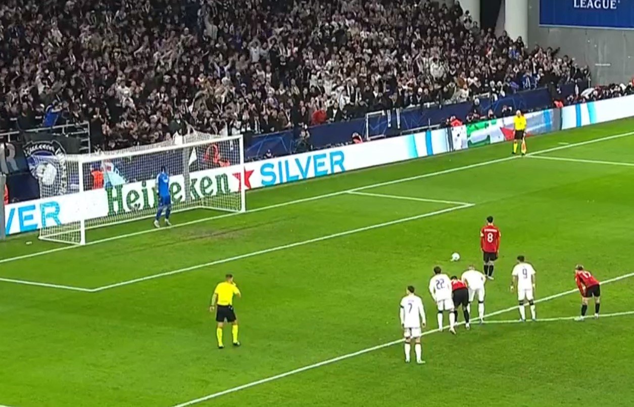 Copenhagen scored two goals in added time of the first half to level the match but the ten men of Man United retook the lead in the second from a controversial penalty as Bruno Fernandes converted the spot kick.
