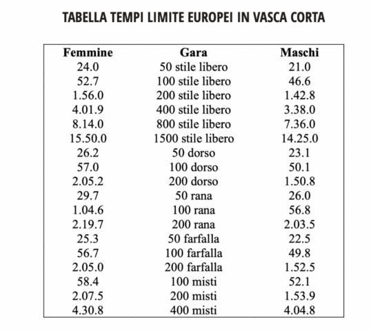 As a refresher, at the bottom of this post are the minimum time standards needed to be achieved by Italian swimmers to make the squad. However, a solid contingent of athletes have already been pre-qualified for Romania due to performances achieved earlier in the season. That list is also presented below.