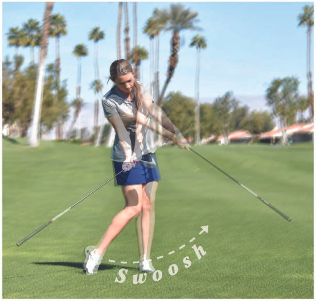 Swing to Swoosh Your Club: If you can’t hear your club swoosh through impact, your swing is most likely too slow. Practice by holding the head end of any club and creating a swooshing sound as your wrists release your handle through the bottom of your swing. Now flip your club and create that sound by holding your grip properly.
