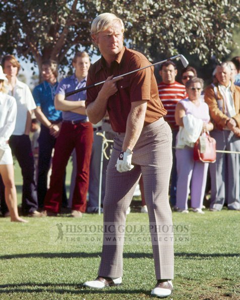 2/ I like Jack Nicklaus’ approach to line up shots. Stand behind the ball, choose your target line and then pick a point in the grass about 2 or 3 feet in front of your ball along your target line. [In the photo above he also used his club to line up his shoulders square to his target line.]