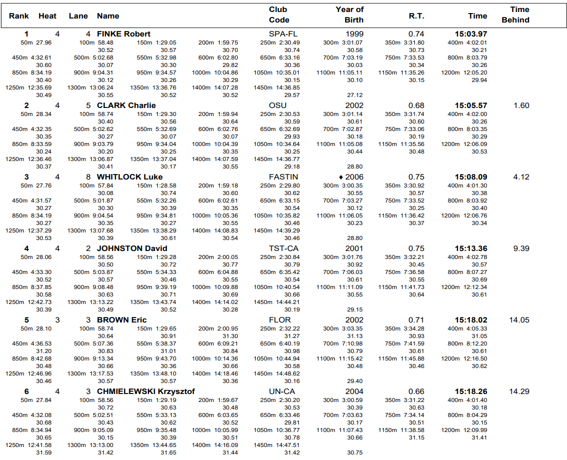 Men’s 1500 Freestyle