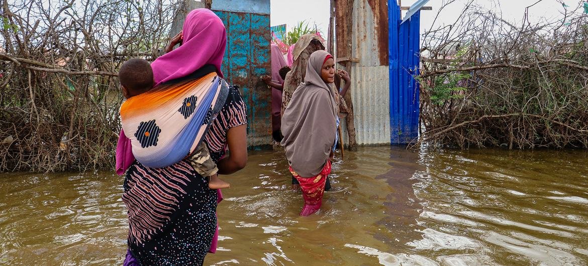 Women wade through flood waters in Jowhar City, Somalia.
