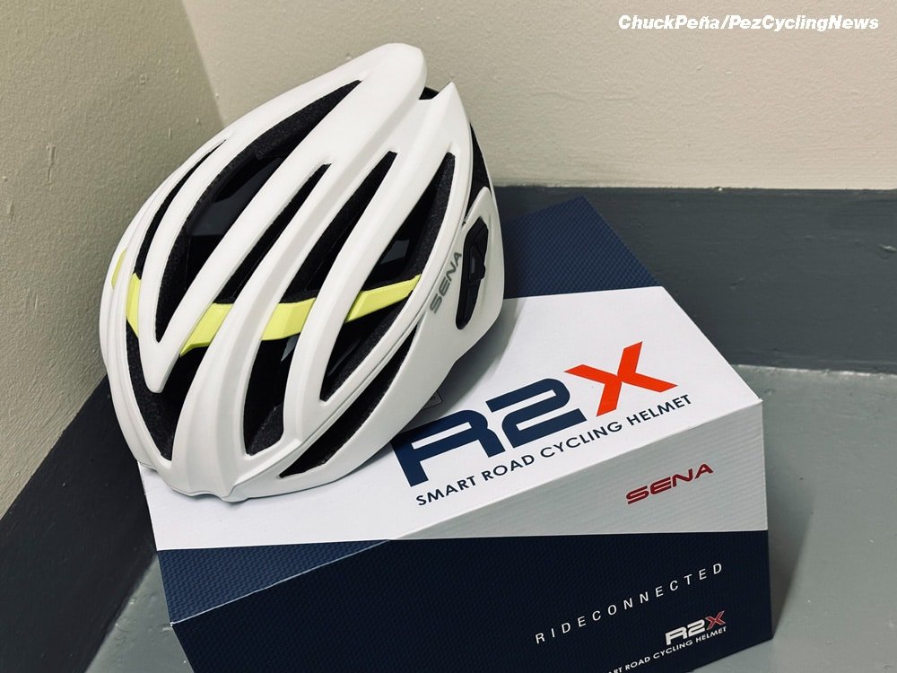 As a helmet, the Sena R2X is a lot like many other road helmets that you would see at your LBS. It has an aerodynamic shape (but isn’t an aero helmet) with 12 intake vents for cooling/airflow and 3 exhaust vents. It wouldn’t look out of place on your local group/shop ride. PEZ got matte white, but it also comes in matte black and matte gray.