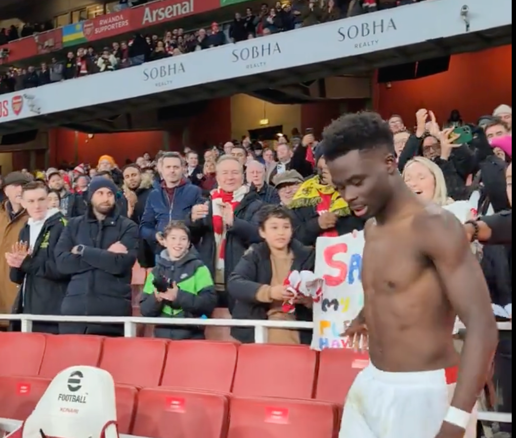 Saka peeled off his jersey as his made his way towards the tunnel before detouring to the stands.