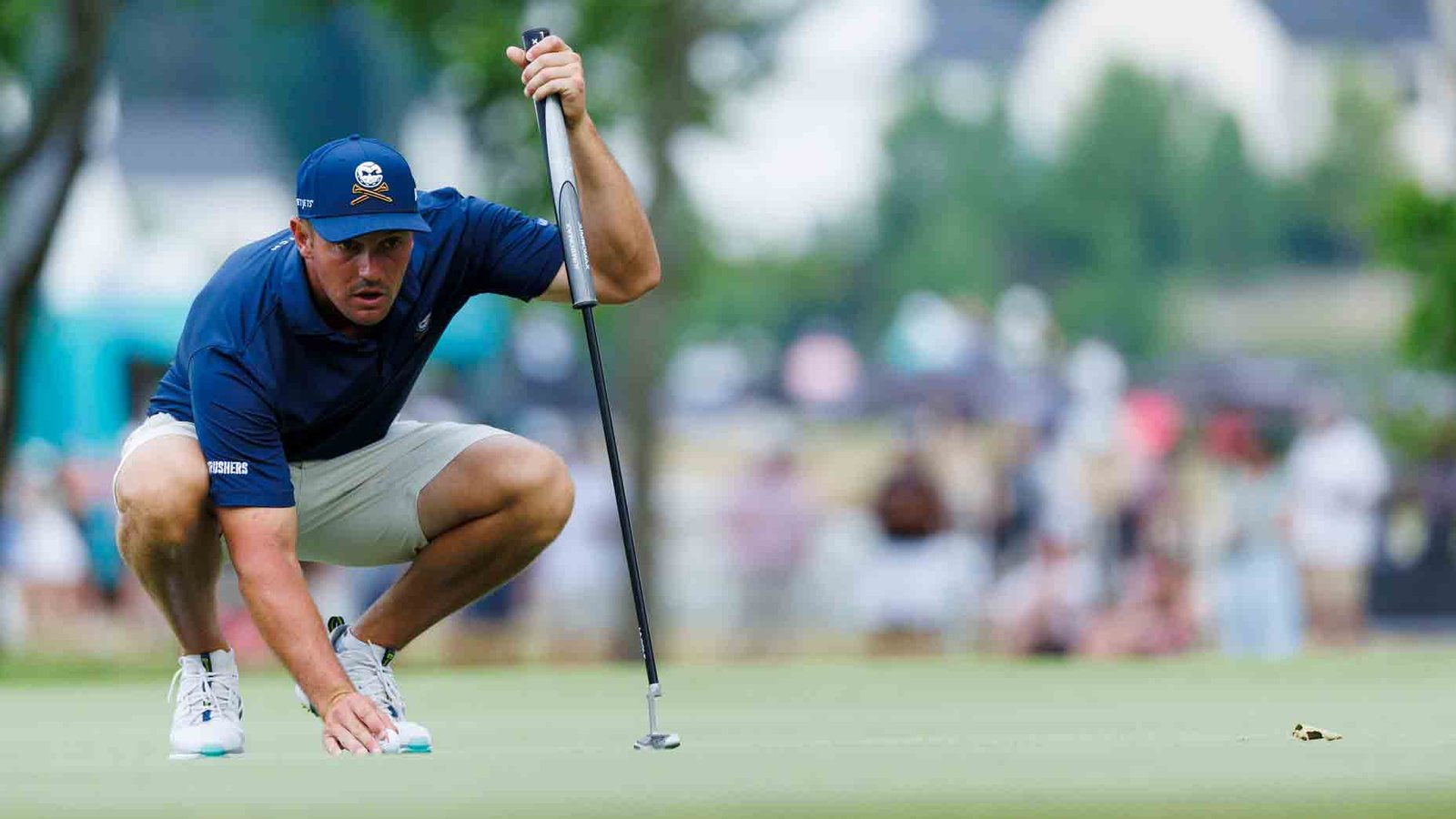 Bryson DeChambeau lines up a putt in June at LIV Golf’s event in Nashville.