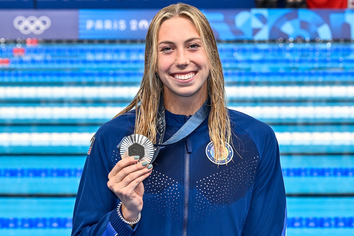 Gretchen Walsh with her Olympic silver medal from the 100 butterfly — Photo Courtesy: Giorgio Scala / Deepbluemedia / Insidefoto