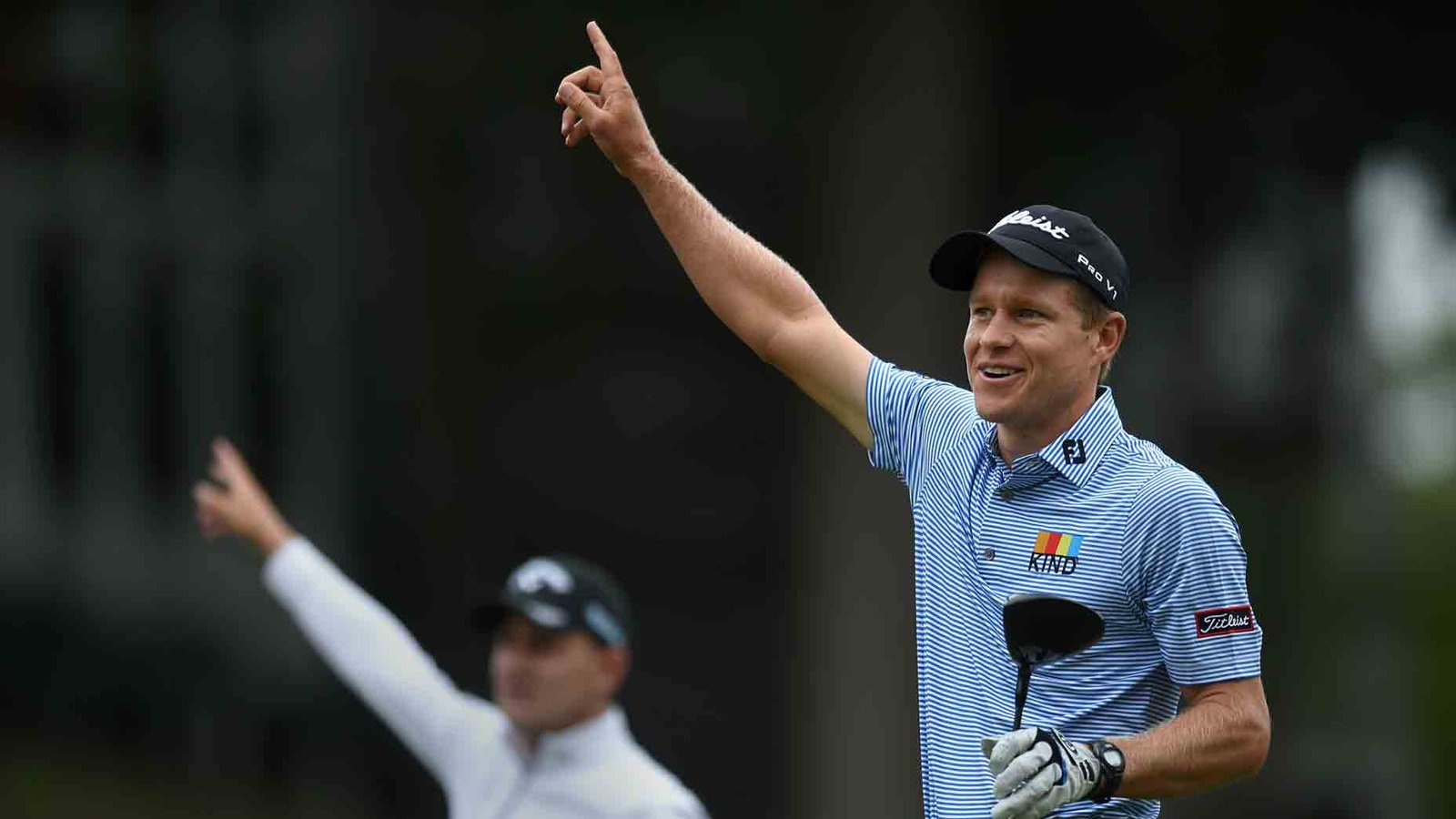 Peter Malnati and Emiliano Grillo point right in 2018 at the Travelers Championship.