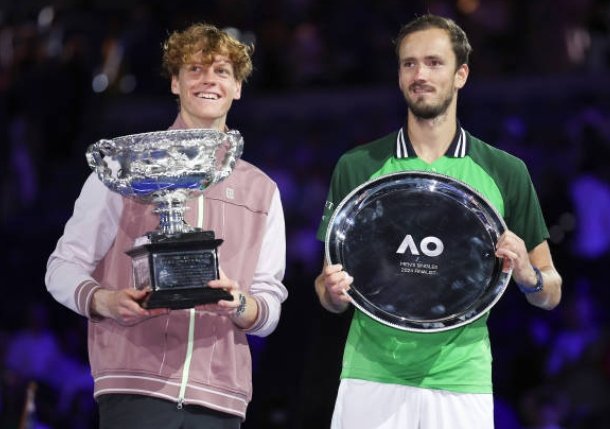 In a topsy-turvy Australian Open final last January, Sinner roared back from a two-set deficit defeating Daniil Medvedev 3-6, 3-6, 6-4, 6-4, 6-3 to capture his maiden major championship.