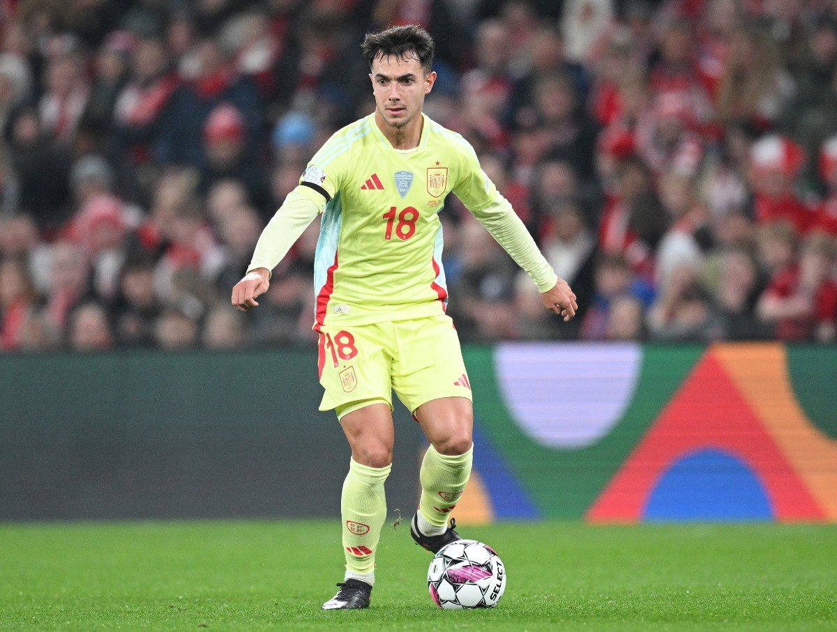 Martin Zubimendi in action for Spain against Denmark (Photo by Stuart Franklin/Getty Images)