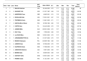 Sophie Hansson claimed the 16th and final spot while Benedetta Pilato failed to progress in 20th in 1:05.30.