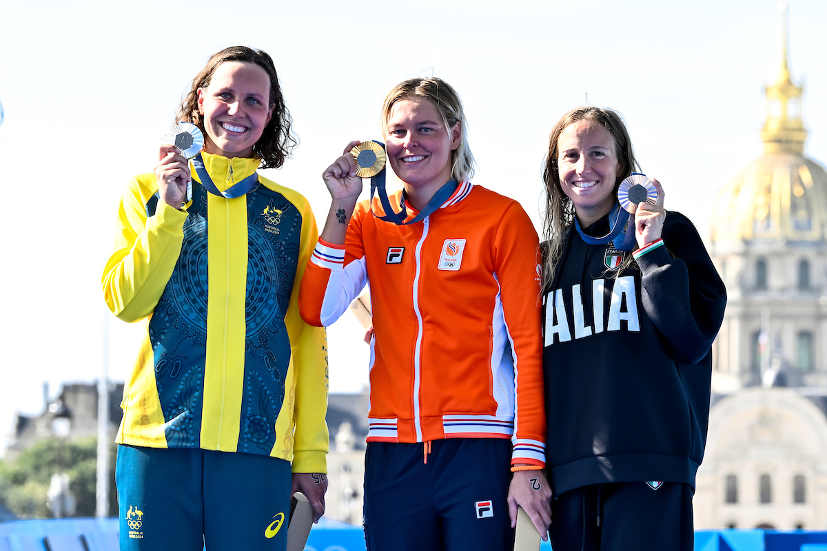SHOW MEDALS: Moesha Johnson of Australia, silver, Sharon Van Rouwendaal of The Netherlands, gold, and Ginevra Taddeucci of Italy: Photo Courtesy: Giorgio Scala / Deepbluemedia.