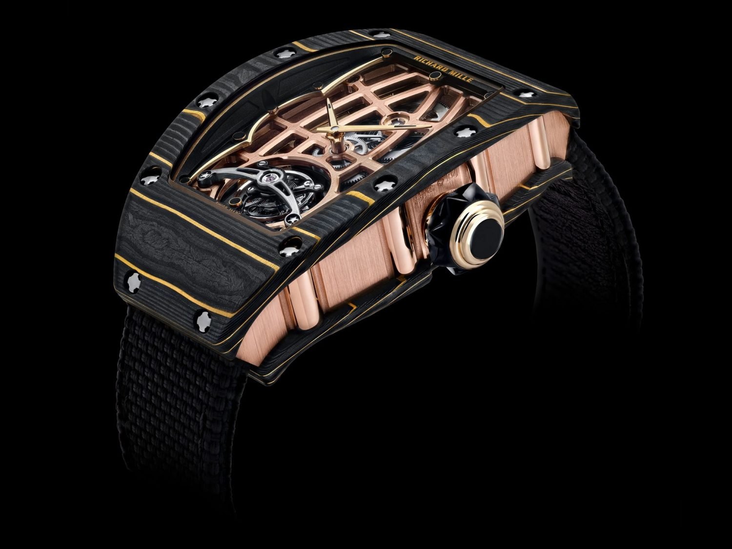 Hamilton’s RM 74-02 is an 18-carat red gold and black gold carbon masterpiece with an open-link bracelet – because a $600K watch deserves to breathe.