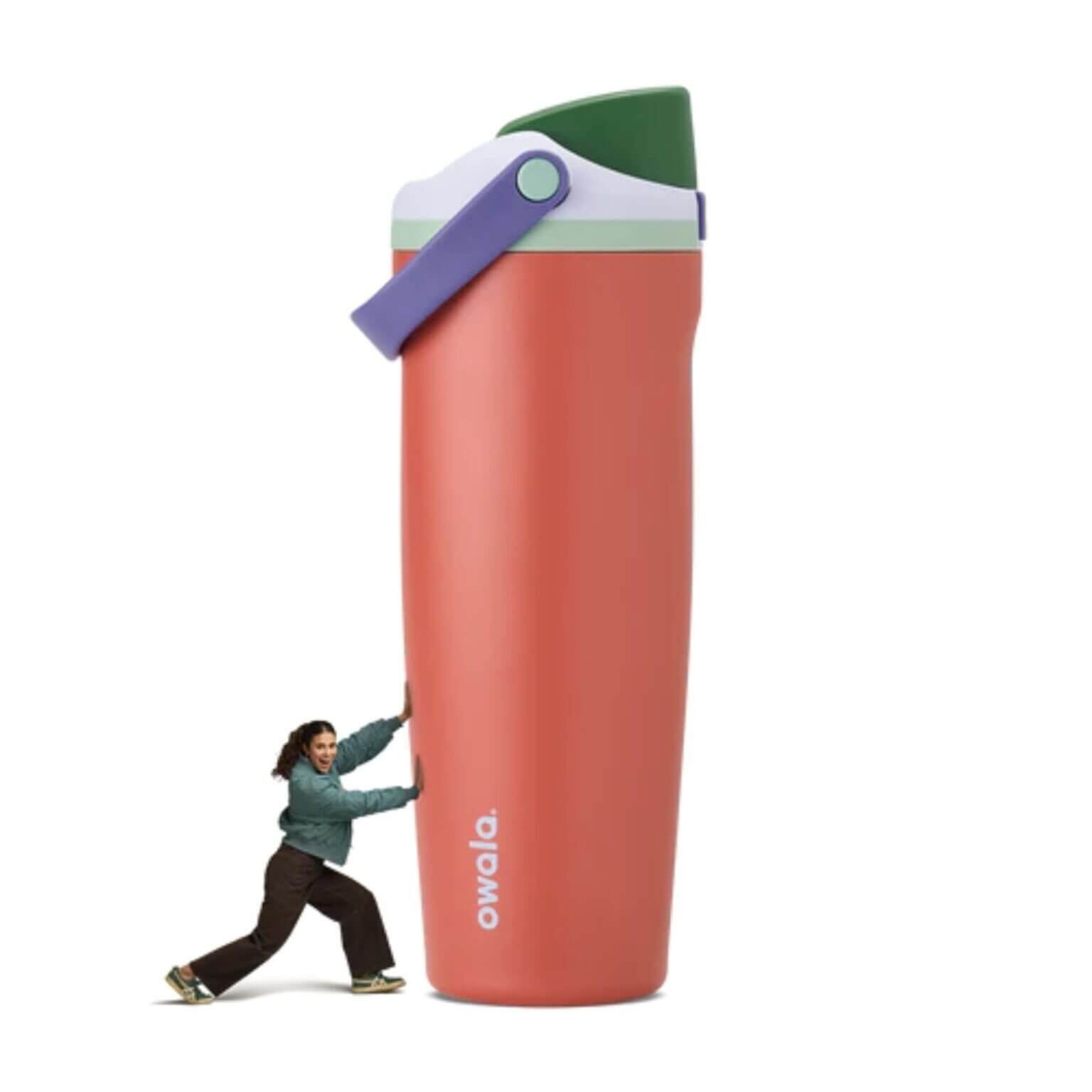 I’m finally replacing it. With what? Owala’s latest and greatest in FreeSip techology, the FreeSip Sway. It has everything I know and love about the old FreeSip bottle, but it now has a grippy carry handle and a tapered design that makes it much easier to fit in a cupholder.