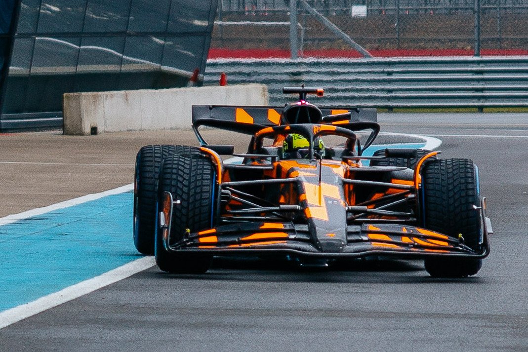 “Running in a striking orange and black camo livery, the MCL39 reportedly enjoyed a trouble-free run on the cold and damp track.