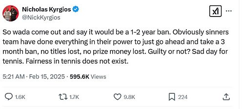 — Nicholas Kyrgios (@NickKyrgios) February 15, 2025