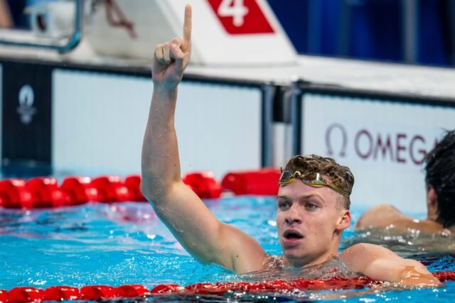#10: Lukas Märtens, Germany (2024 Rank: 22) – Märtens narrowed his focus in 2024 and it paid off. After previously spreading himself thin across the 200, 400, 800 and 1500 freestyle events, the German native keyed in on the 200 and 400 free last year and reaped the rewards. After three straight podium finishes in the 400 free at the World Championships, winning silver in 2022 and bronze in both 2023 and 2024, Märtens roared to Olympic gold in Paris (3:41.78) after posting a lifetime best 3:40.33 at the German Swimming Championships to rank #4 all-time. That 400 free time ranked him #1 in the world last year, and at the same meet, he posted a PB of 1:44.14 in the 200 free, which ranked 2nd in the world. The now 23-year-old went on to finish 5th in the 200 free in Paris, and was also a surprise finalist in the 200 back, placing 8th in 1:55.97. Given that he only raced the 800 free once, the fact that Märtens ranked 6th in the world last year in 7:43.52 just shows his natural ability in the event. If he expands his focus back up to the 800-meter distance this year, he’s a three-event medal threat at Worlds.