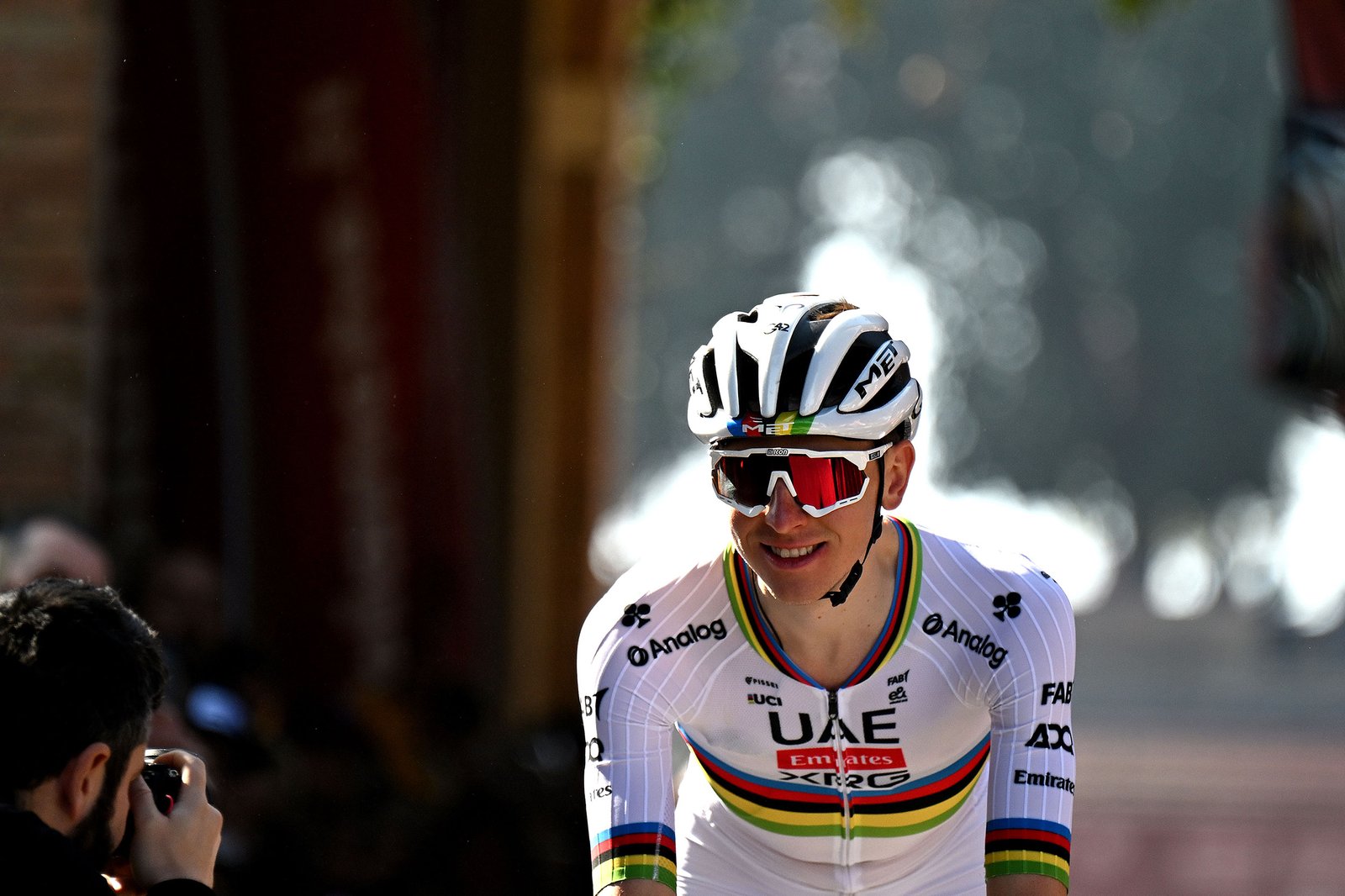 World champion Tadej Pogačar rolls to the start of the race, relaxed ahead of his bid for a third victory