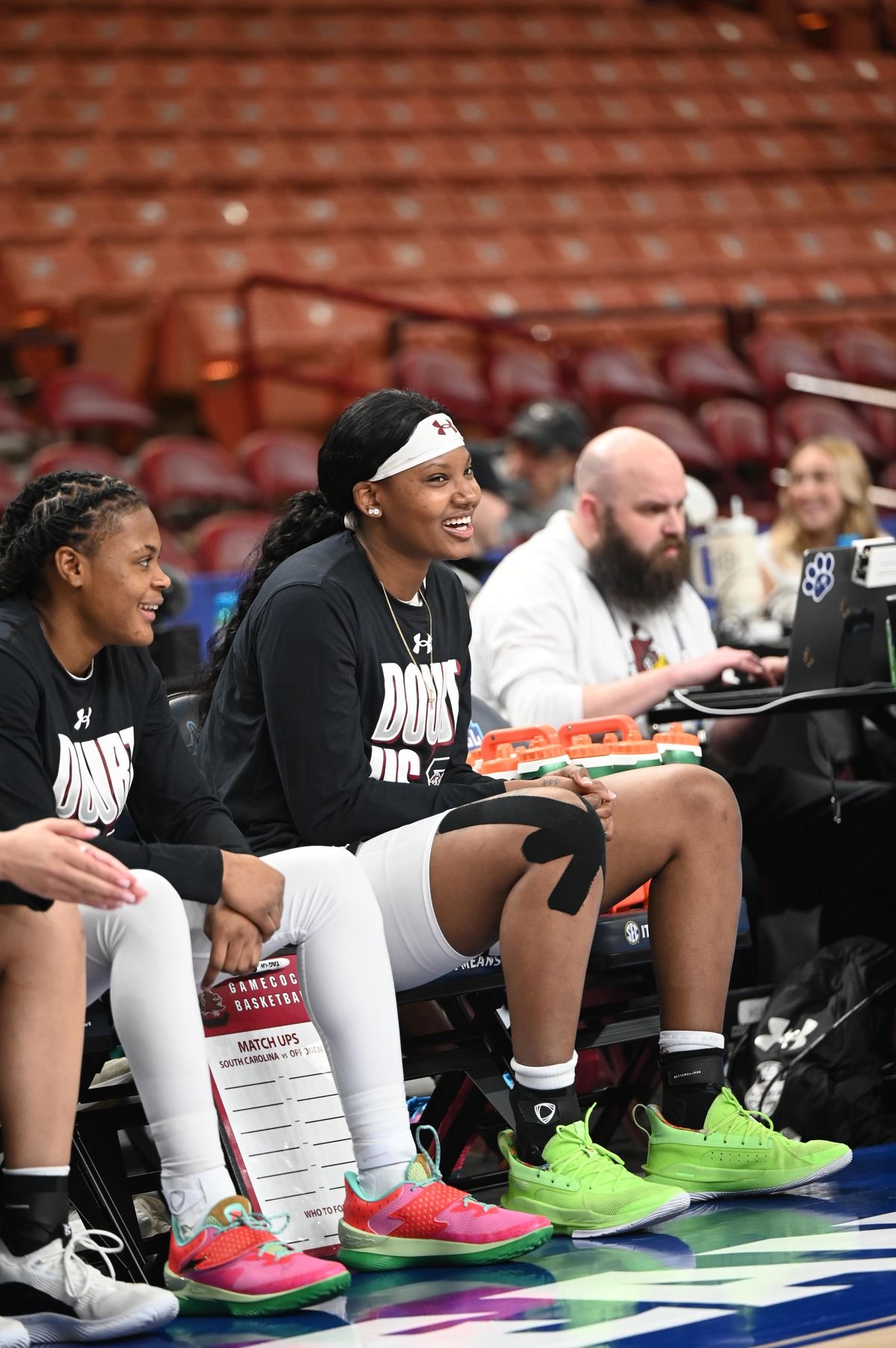 MiLaysia Fulwiley and Sania Feagin prepare for the game. Both players would be named to the SEC All-Tournament team, with Feagin, in particular, impressing in the final with 11 points, six rebounds and three assists.