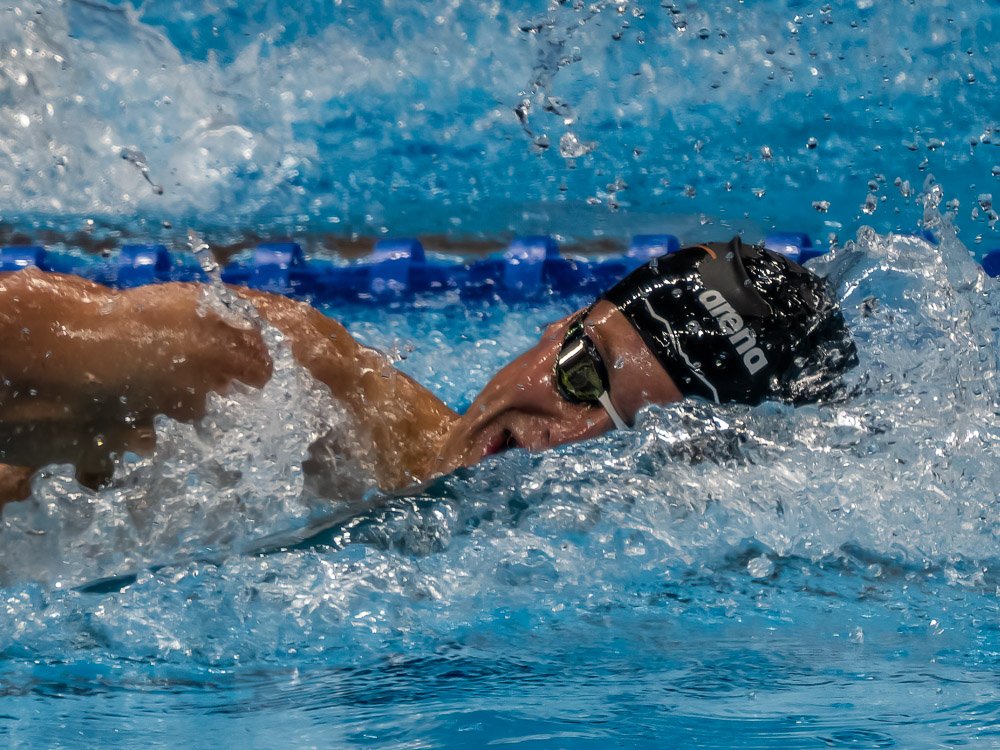 February: A trip to the World Aquatics Championships in Doha ends in bronze in the 200 free and gold in the 400 medley relay.