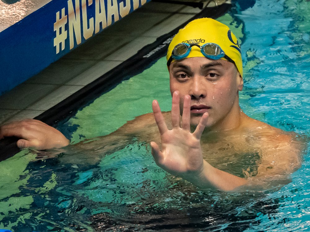 The final standings were not decided until the bitter end, and Cal had to hold off a flurry of Indiana point-scoring in the breaststroke and diving events. Saturday evening, that meant 37 points in the 200 breast, led by surprise winner Jassen Yep, and 39 from platform diving behind three-time champion Carson Tyler. But Cal did enough to finish the NCAA Men’s Championships with 471 points, just ahead of Indiana’s 459.